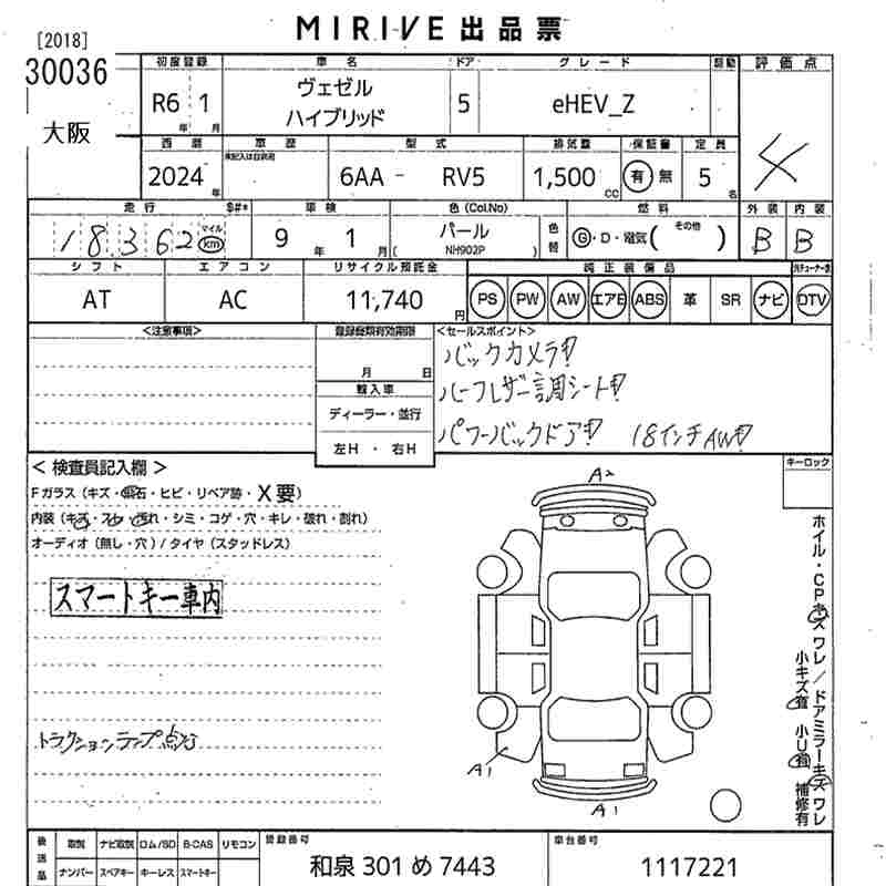 HONDA VEZEL 2024 г., лот № 30036