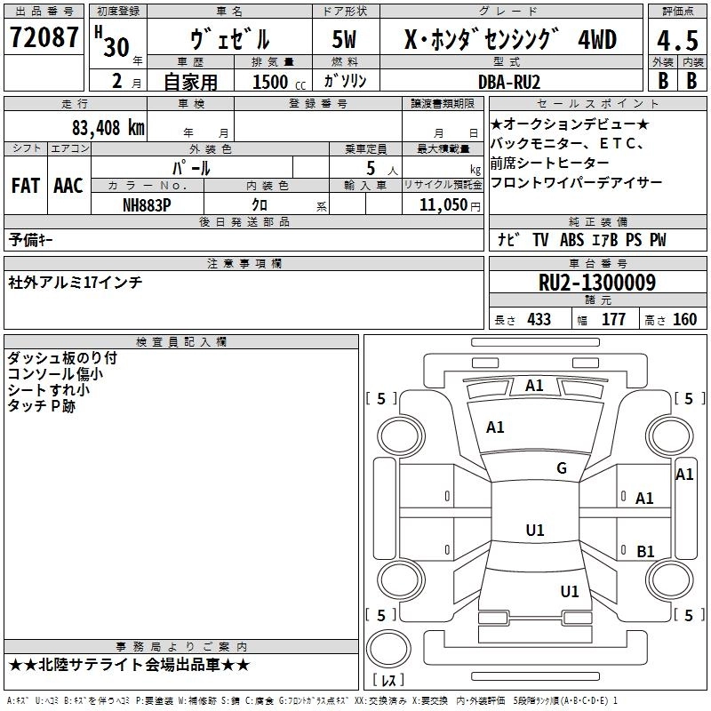 HONDA VEZEL 2018 г., лот № 72087