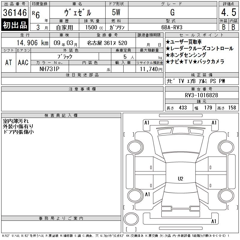 HONDA VEZEL 2024 г., лот № 36146