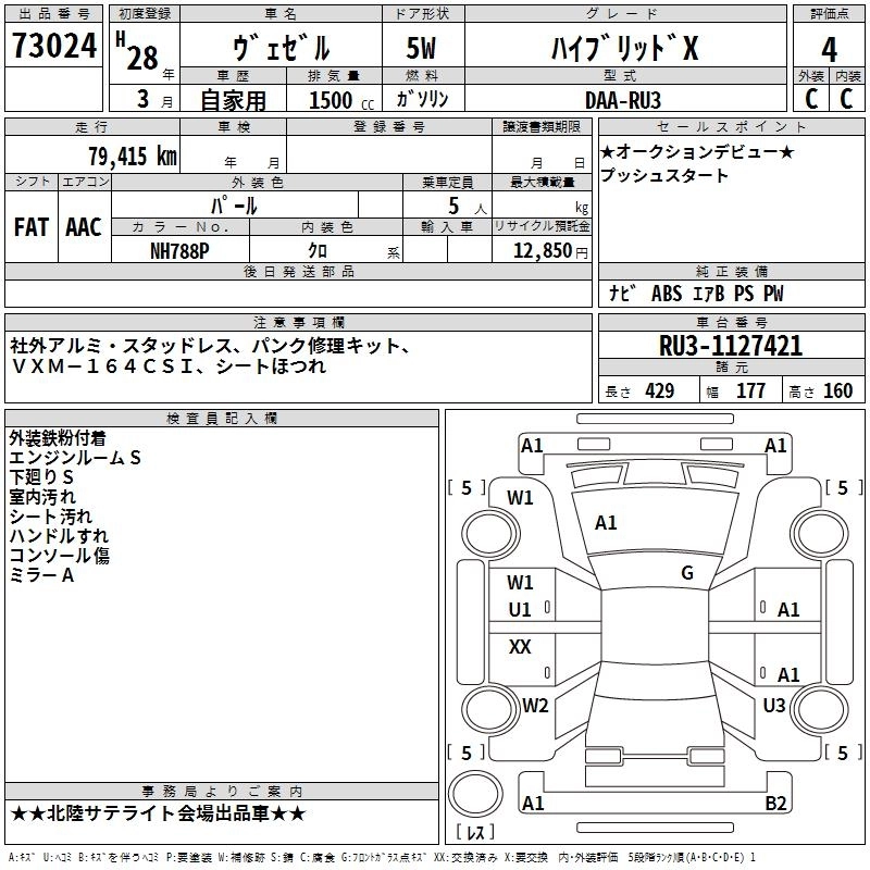 HONDA VEZEL 2016 г., лот № 73024