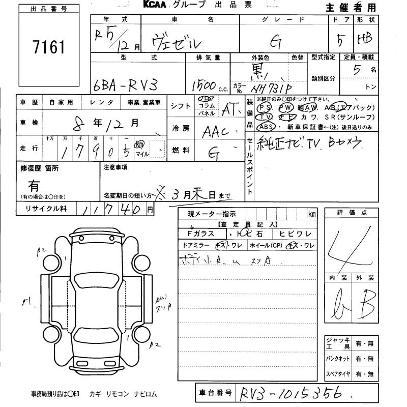 HONDA VEZEL 2023 г., лот № 7161