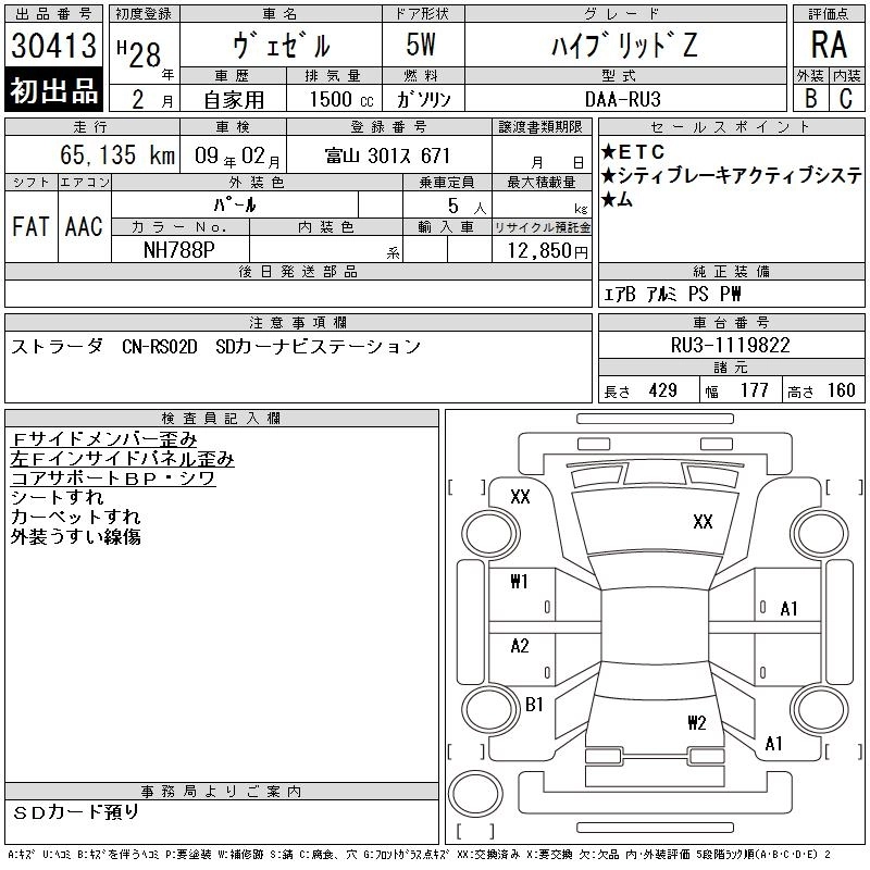 HONDA VEZEL 2016 г., лот № 30413
