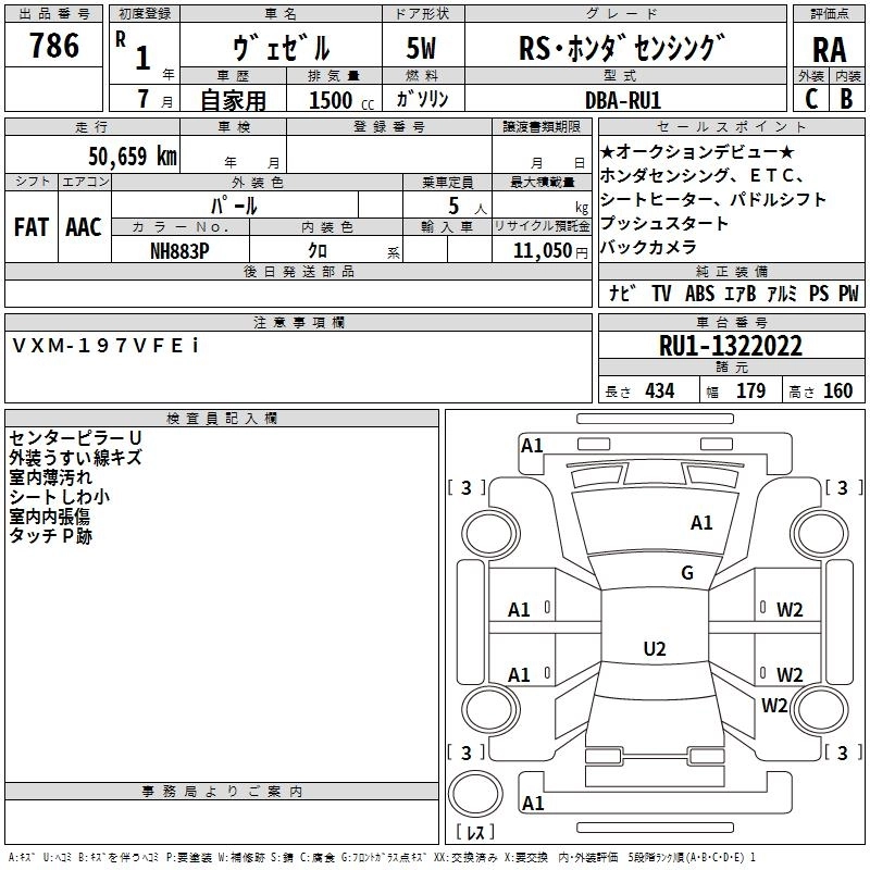 HONDA VEZEL 2019 г., лот № 786