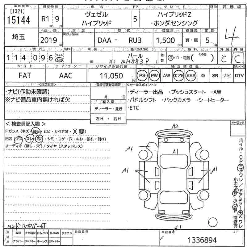 HONDA VEZEL 2019 г., лот № 15144