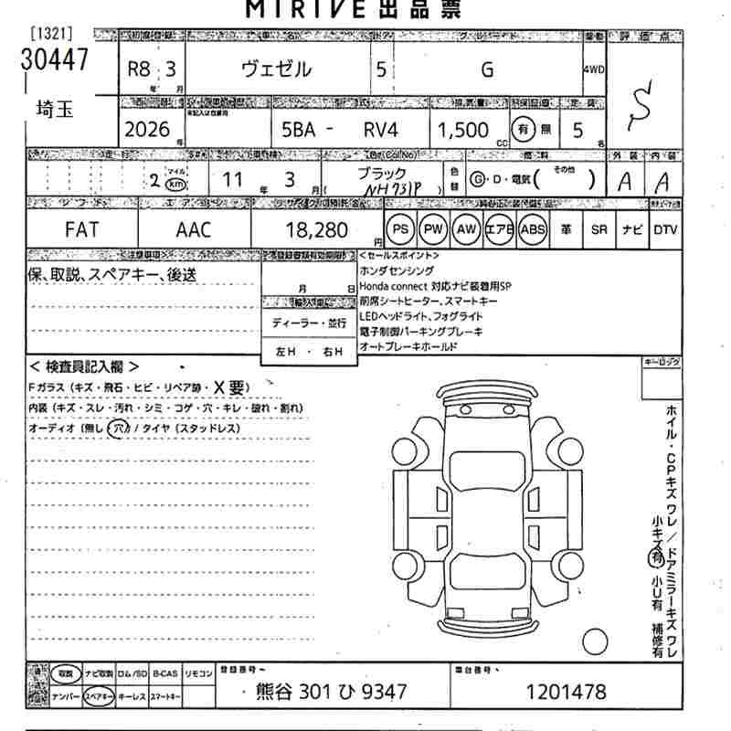 HONDA VEZEL 2026 г., лот № 30447