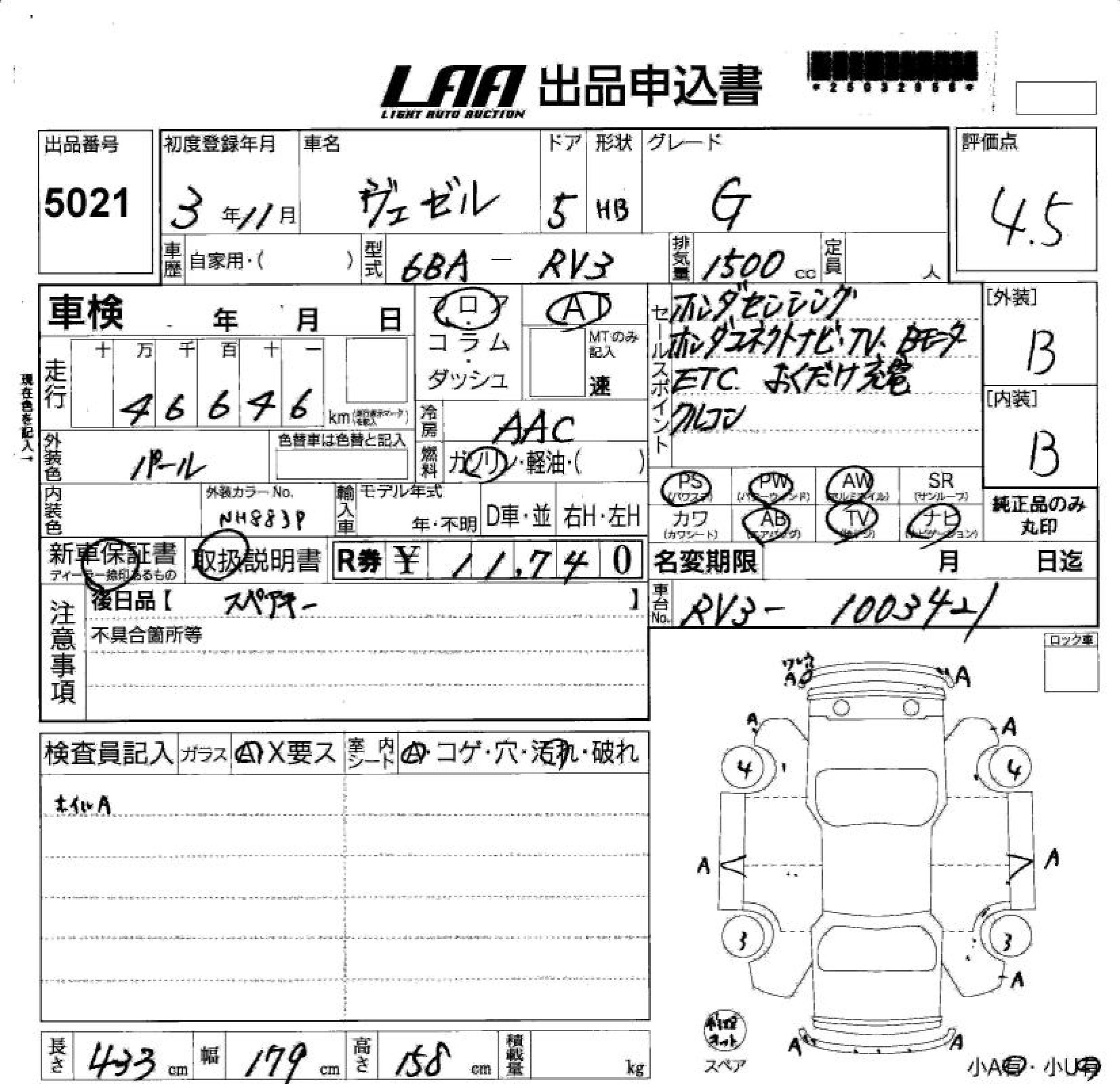 HONDA VEZEL 2021 г., лот № 5021