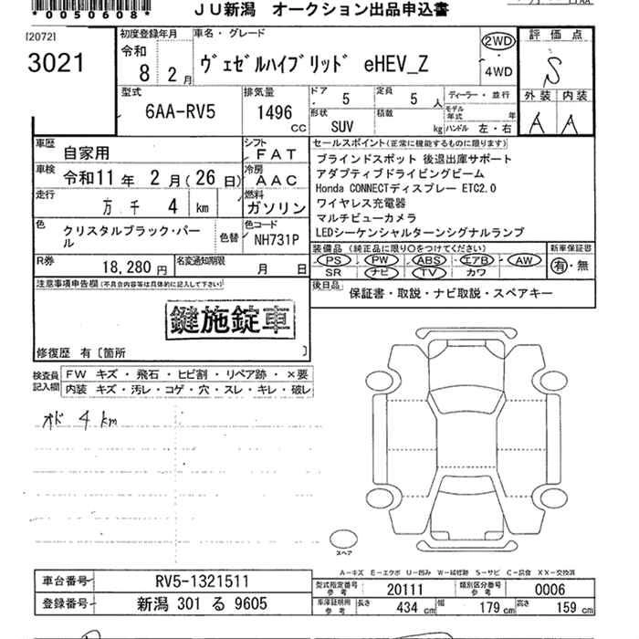 HONDA VEZEL 2026 г., лот № 3021
