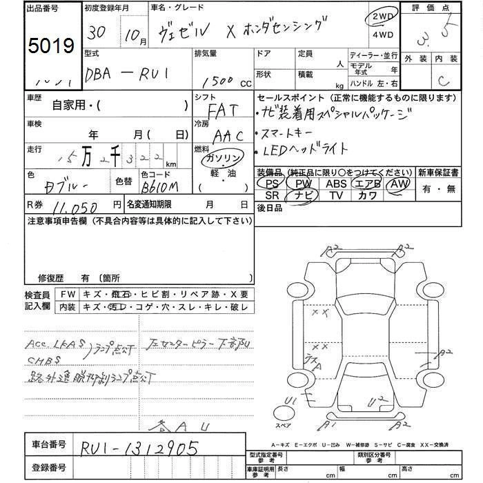 HONDA VEZEL 2018 г., лот № 5019