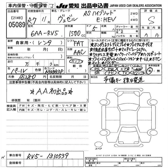 HONDA VEZEL 2025 г., лот № 5089