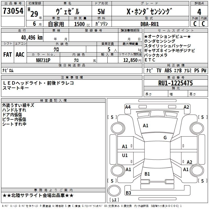 HONDA VEZEL 2017 г., лот № 73054