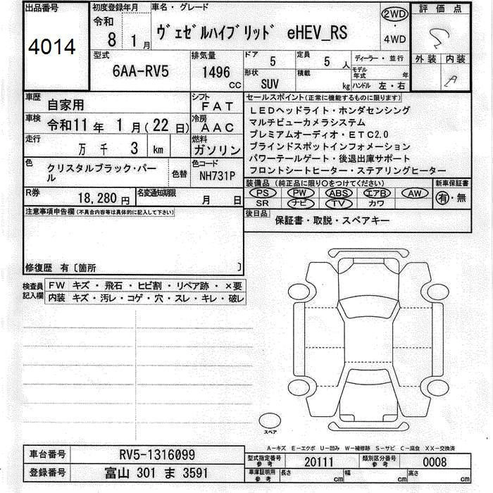 HONDA VEZEL 2026 г., лот № 4014