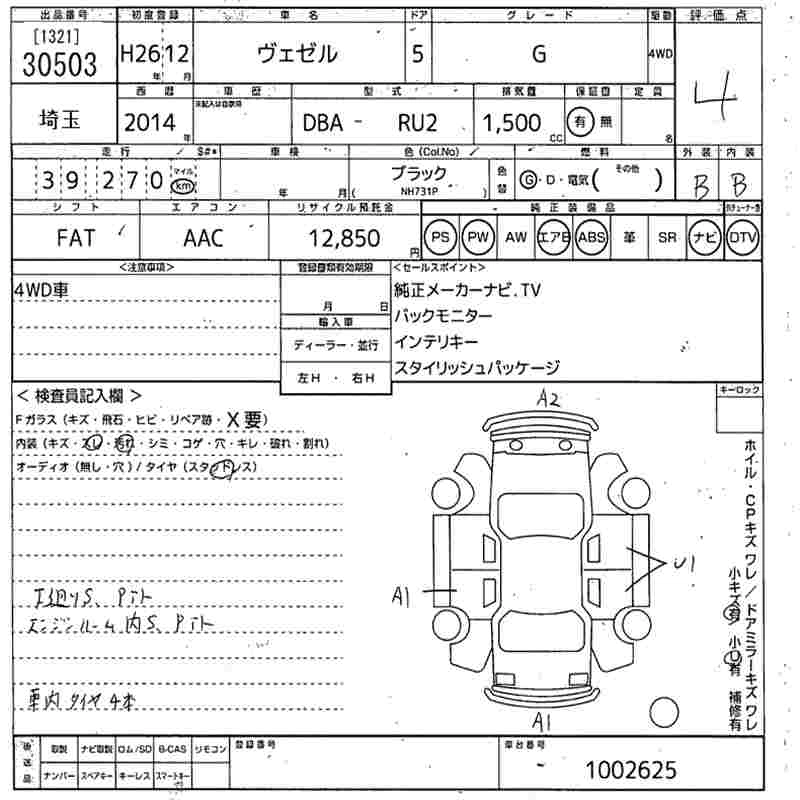 HONDA VEZEL 2014 г., лот № 30503