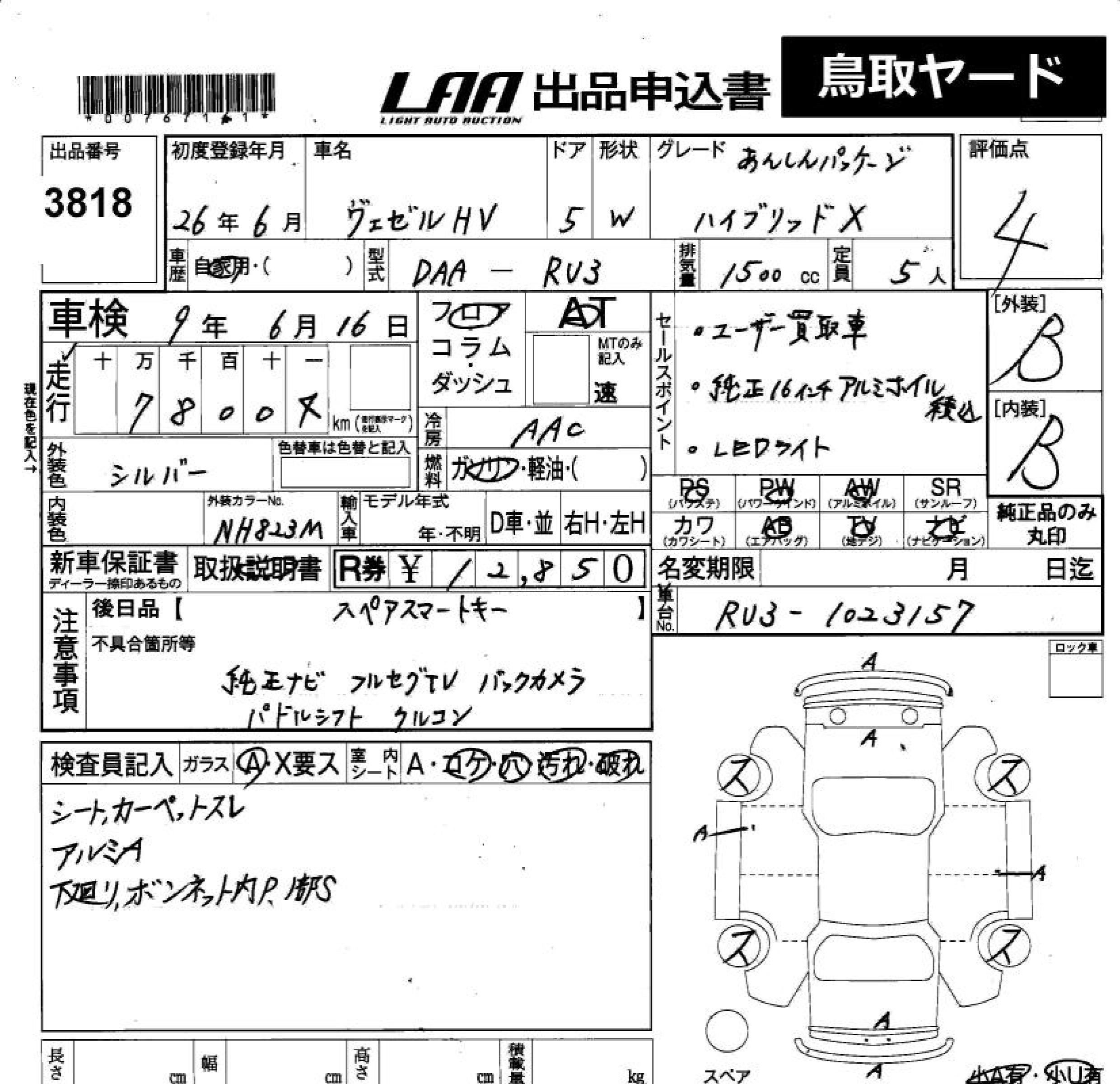 Статус выставлен на аукцион Лот 3818 Аукцион LAA Okayama Дата аукциона 13.03.2026