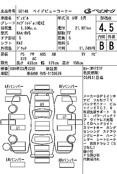 HONDA VEZEL 2024 г., лот № 50148