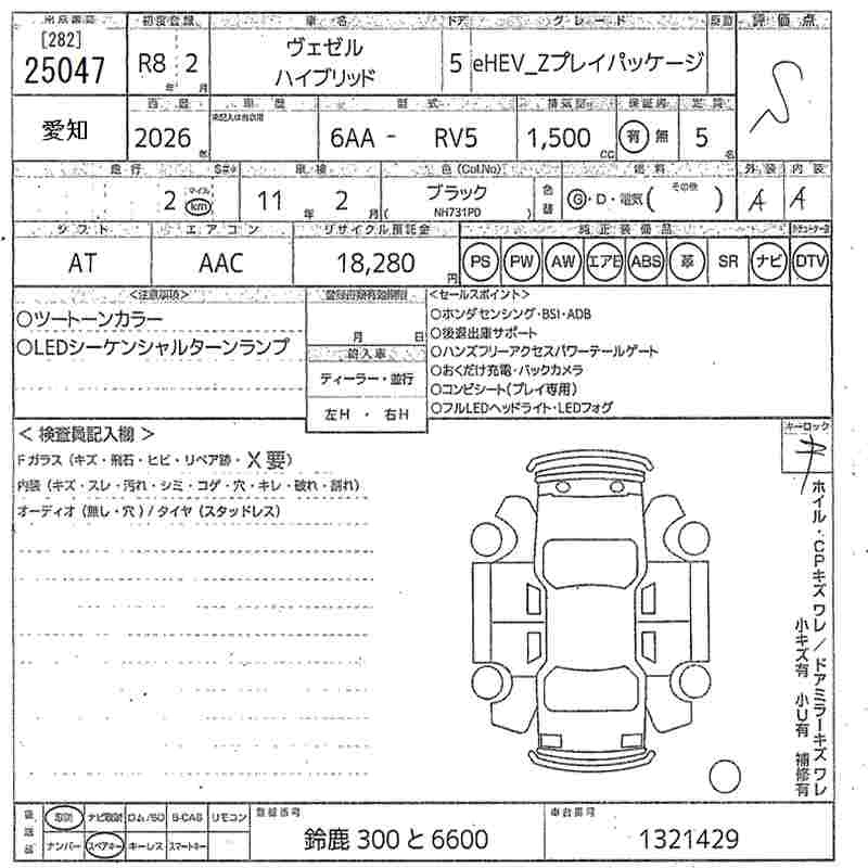 HONDA VEZEL 2026 г., лот № 25047