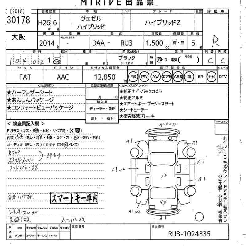 HONDA VEZEL 2014 г., лот № 30178