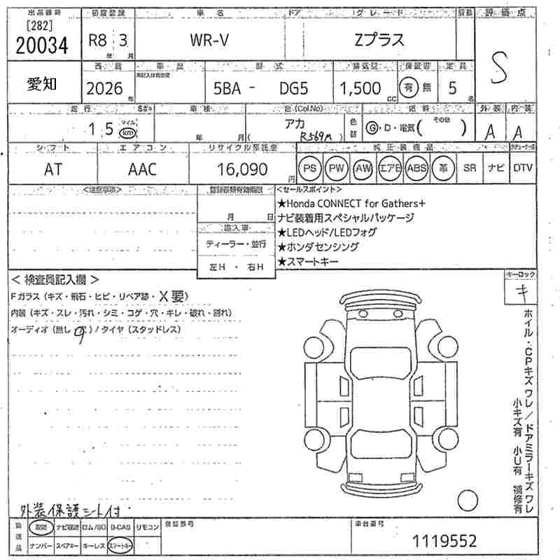 Статус выставлен на аукцион Лот 20034 Аукцион MIRIVE Aichi Дата аукциона 13.03.2026