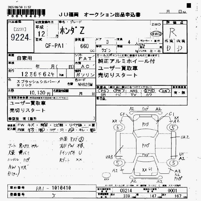 Статус не продан Лот 9224 Аукцион JU Fukuoka Дата аукциона 23.01.2026