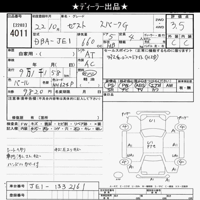 HONDA ZEST SPARK 2010 г., лот № 4011