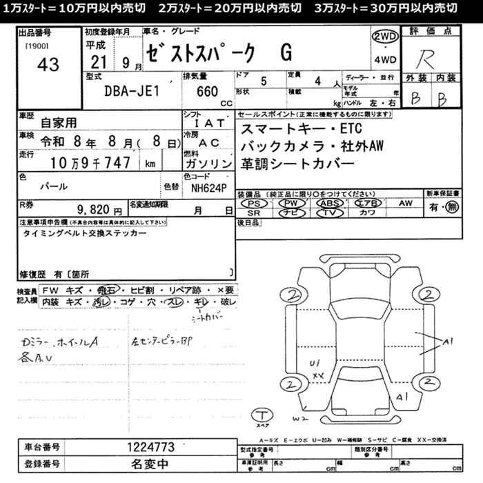 Стартовая цена авто на аукционе 20 000 ¥
