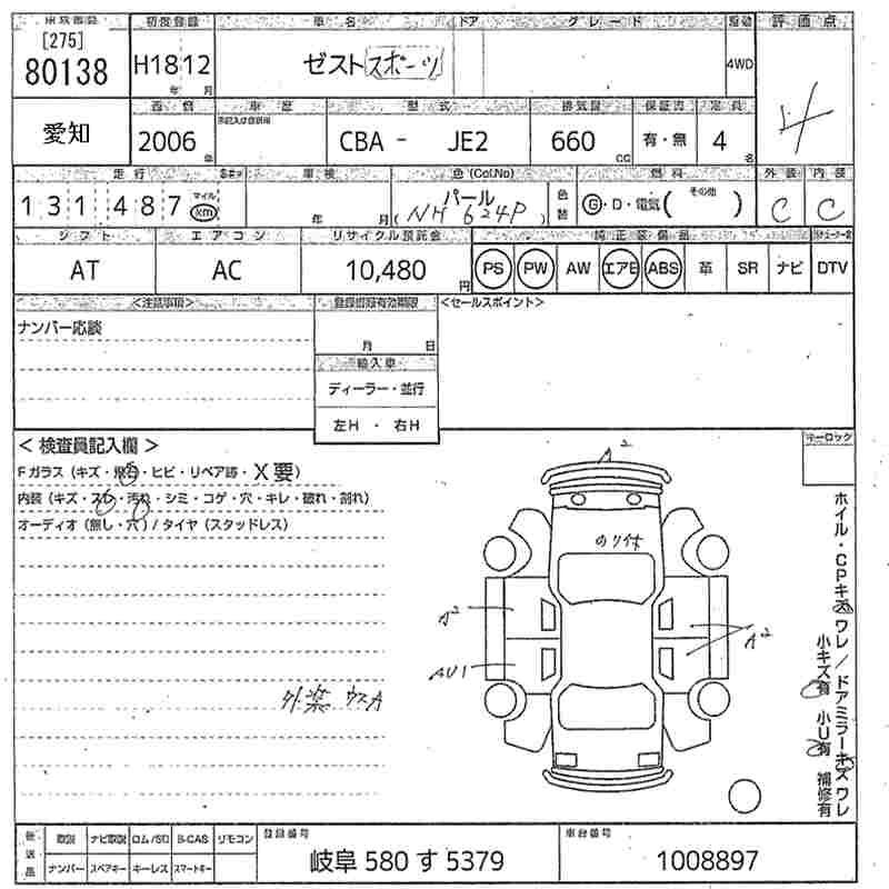 HONDA ZEST SPARK 2006 г., лот № 80138