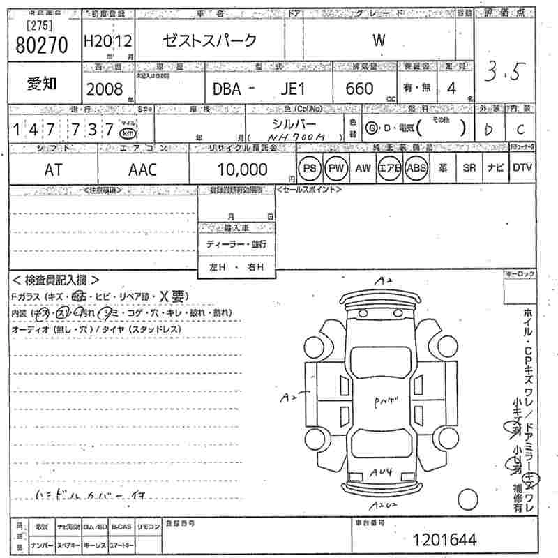 HONDA ZEST SPARK 2008 г., лот № 80270