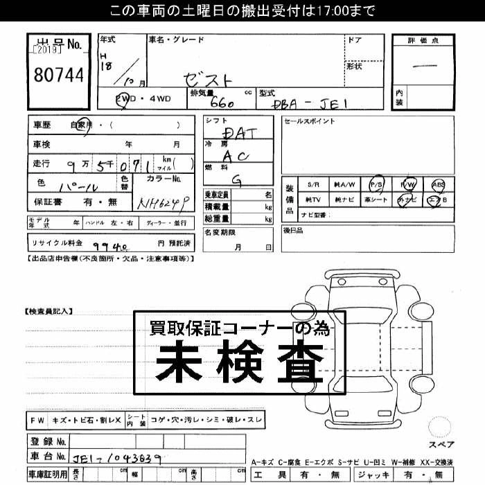 HONDA ZEST 2006 г., лот № 80744