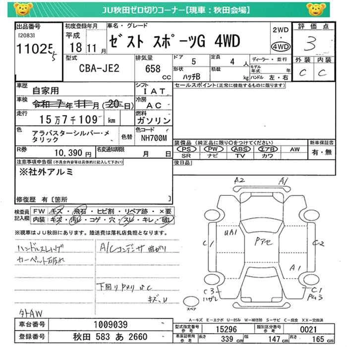 Год выпуска2006 Пробег 157 000 км КузовJE2 Комплектация4WD SPORT G