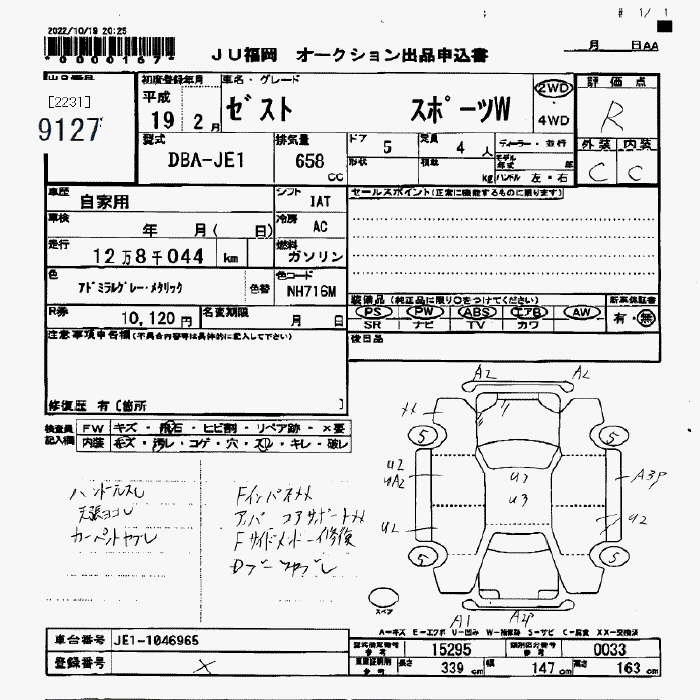 Статус не продан Лот 9127 Аукцион JU Fukuoka Дата аукциона 23.01.2026