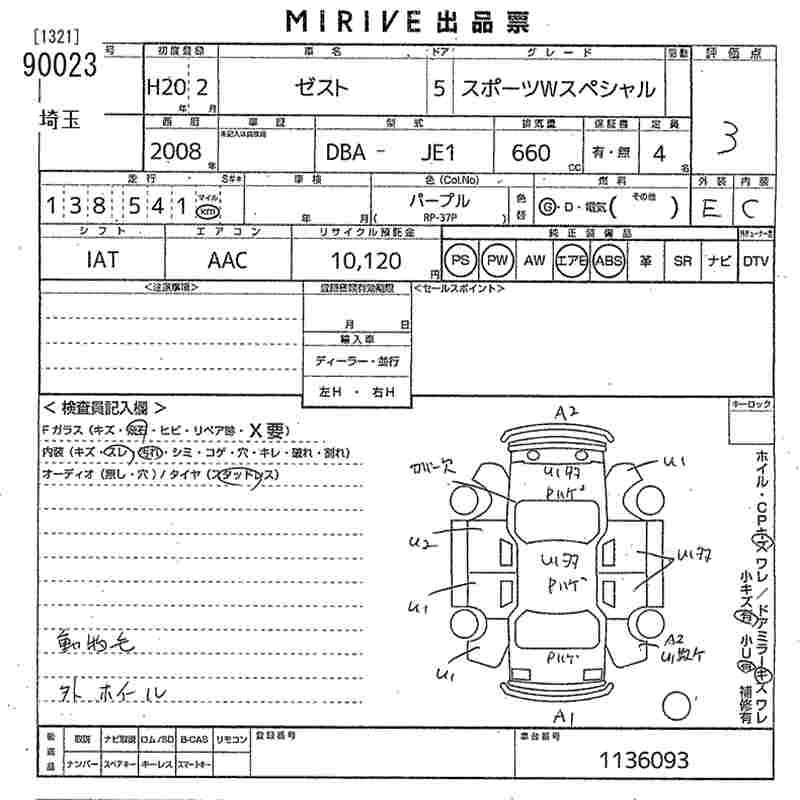 Статус выставлен на аукцион Лот 90023 Аукцион MIRIVE Saitama Дата аукциона 11.03.2026
