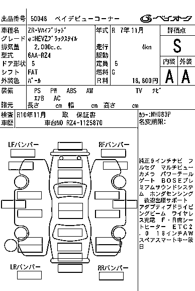 HONDA ZR-V 2025 г., лот № 50048