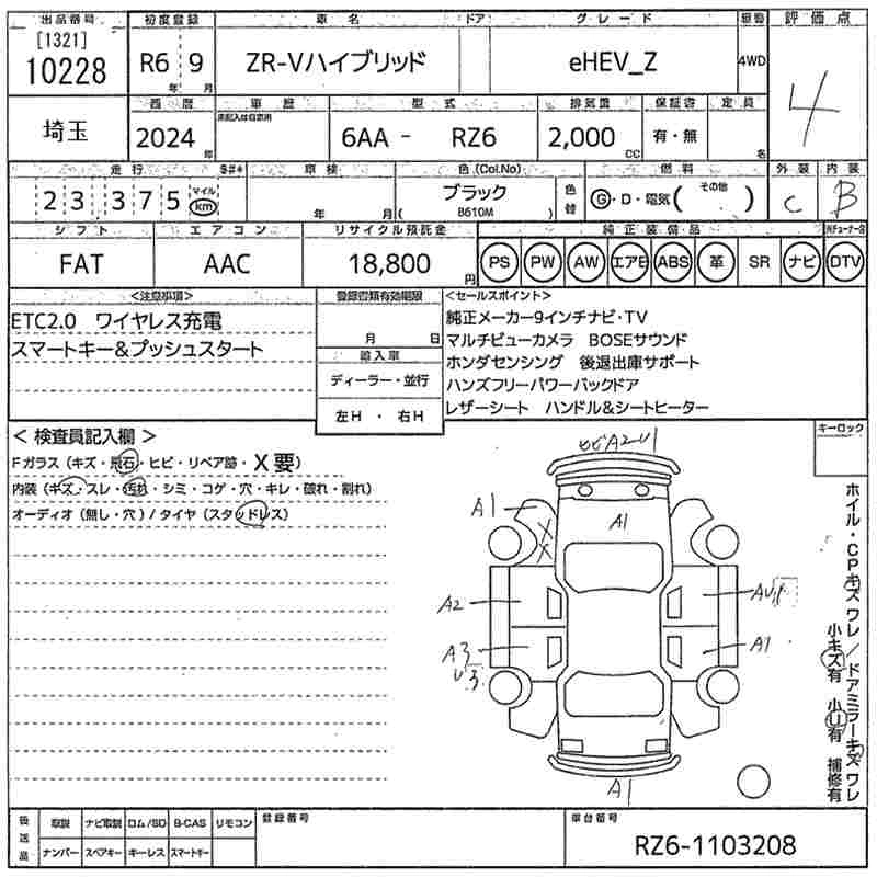 HONDA ZR-V 2024 г., лот № 10228