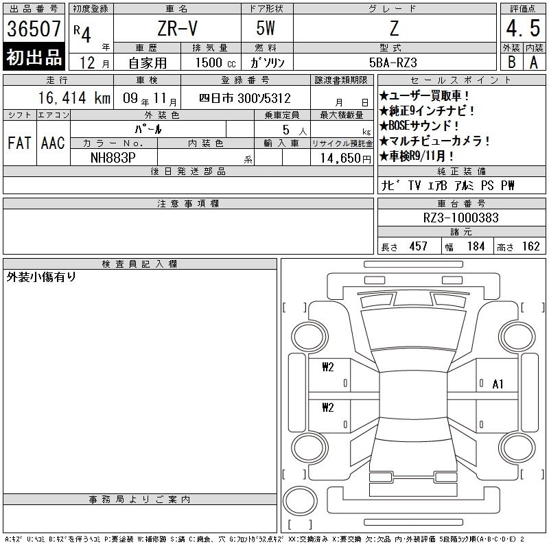 HONDA ZR-V 2022 г., лот № 36507