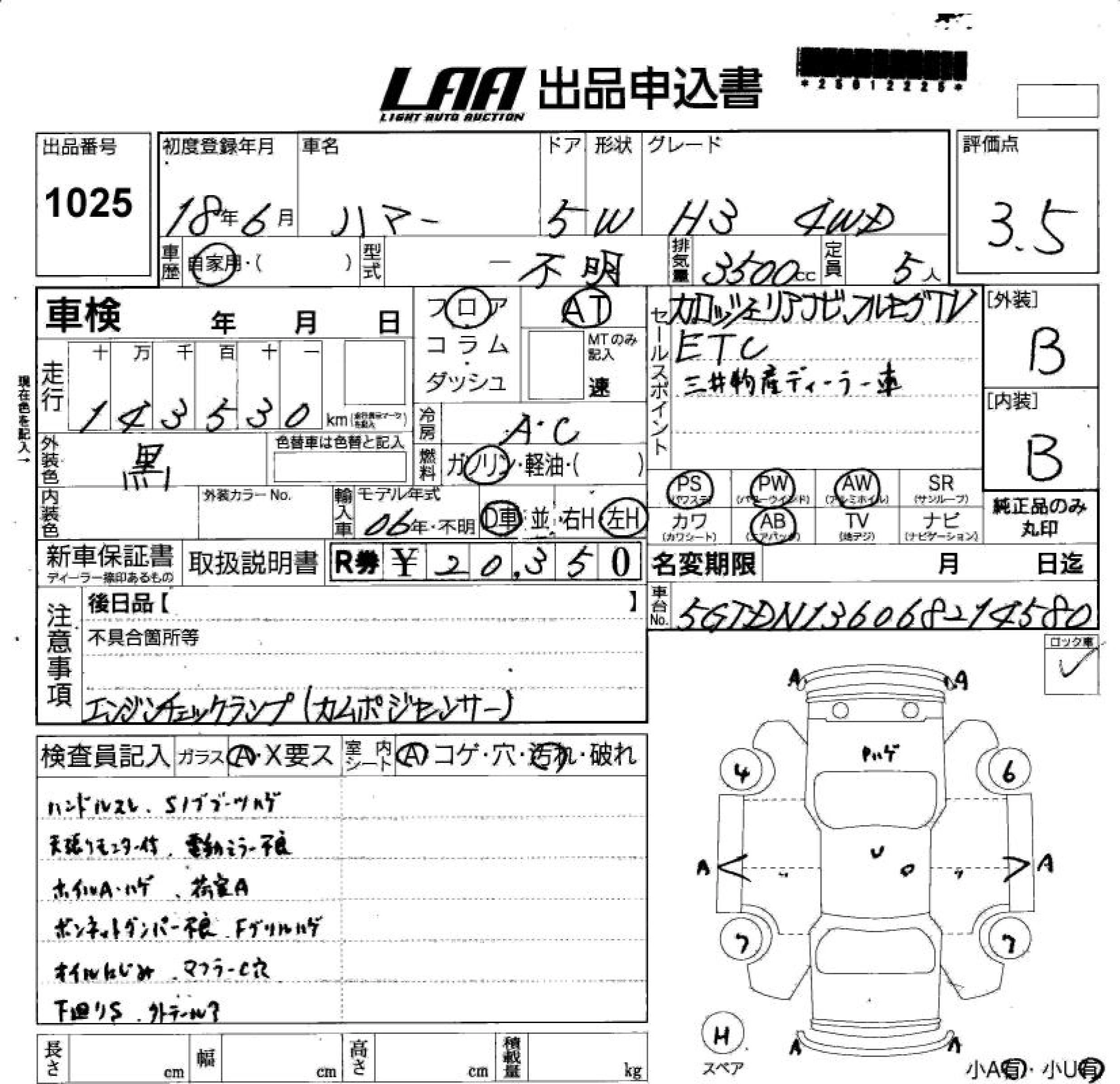 HUMMER HUMMER H3 2006 г., лот № 1025