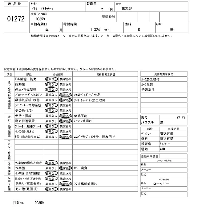 Статус выставлен на аукцион Лот 1272 Аукцион ARAI Kenki Дата аукциона 09.12.2025