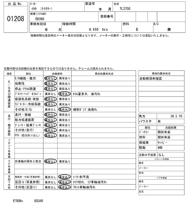 Статус выставлен на аукцион Лот 1208 Аукцион ARAI Kenki Дата аукциона 27.01.2026
