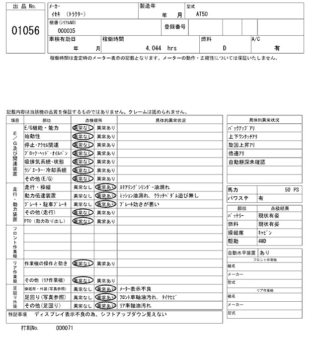 Статус выставлен на аукцион Лот 1056 Аукцион ARAI Kenki Дата аукциона 27.01.2026