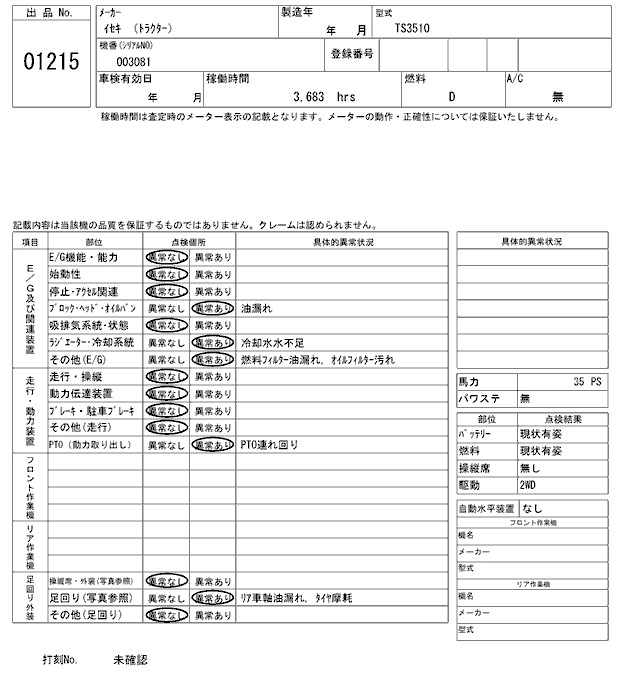 Статус выставлен на аукцион Лот 1215 Аукцион ARAI Kenki Дата аукциона 27.01.2026