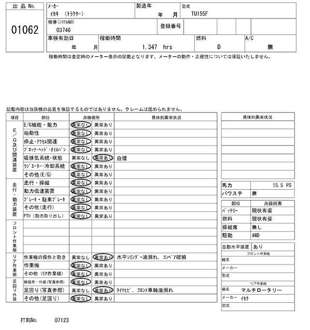 Статус выставлен на аукцион Лот 1062 Аукцион ARAI Kenki Дата аукциона 27.01.2026