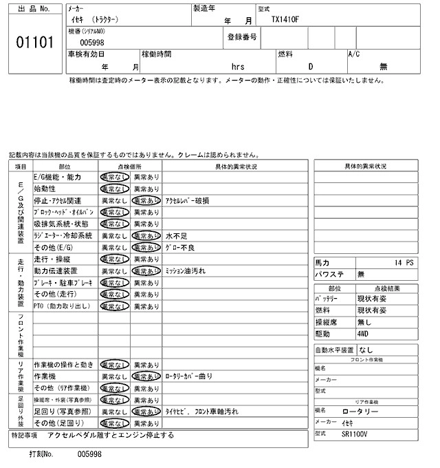 Статус выставлен на аукцион Лот 1101 Аукцион ARAI Kenki Дата аукциона 27.01.2026