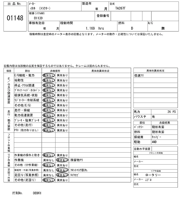 Статус выставлен на аукцион Лот 1148 Аукцион ARAI Kenki Дата аукциона 27.01.2026