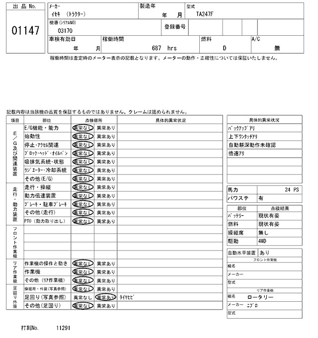 Статус выставлен на аукцион Лот 1147 Аукцион ARAI Kenki Дата аукциона 27.01.2026