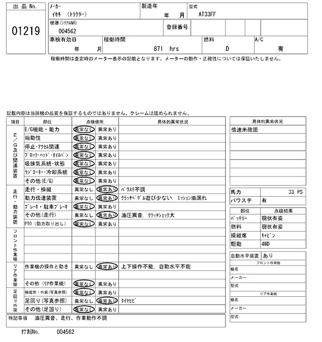 Статус не продан Лот 1219 Аукцион ARAI Kenki Дата аукциона 10.02.2026