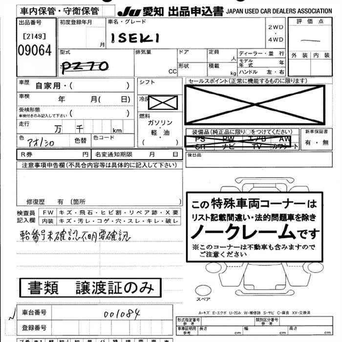 Статус выставлен на аукцион Лот 9064 Аукцион JU Aichi Дата аукциона 12.03.2026