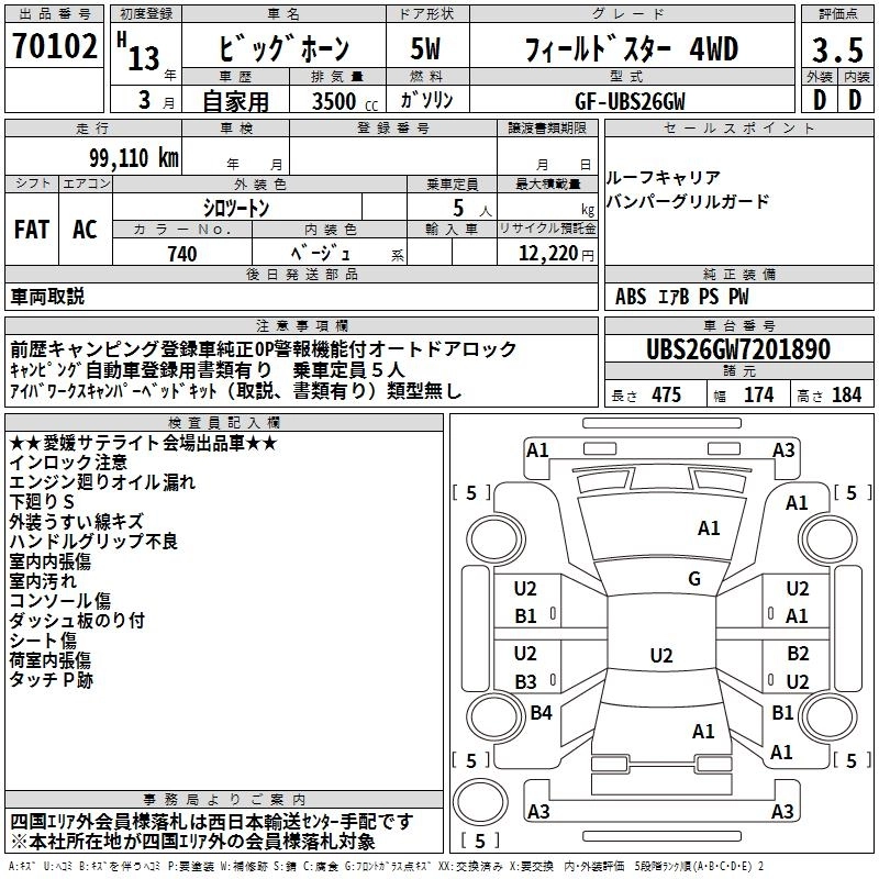 Год выпуска2001 Пробег 99 000 км КузовUBS26GW Комплектация FIELDSTAR 4WD