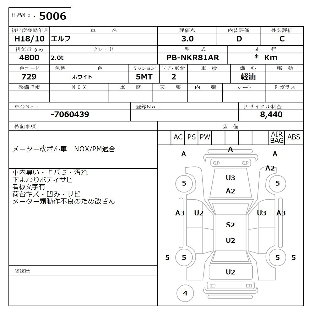 Год выпуска2006 КузовNKR81AR Комплектация2.0t