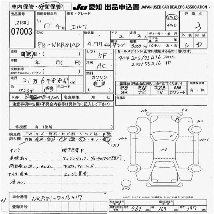 Год выпуска2005 Пробег 217 000 км КузовNKR81AD Комплектация3t