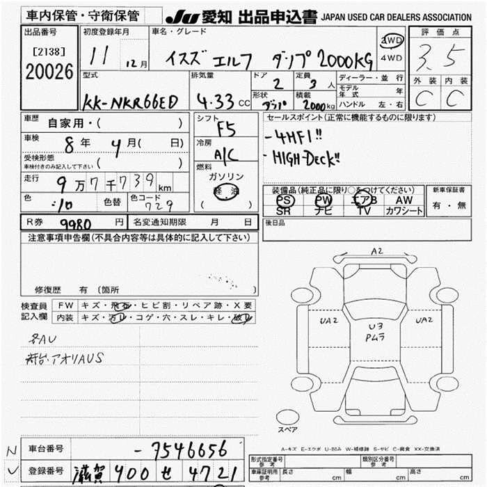 Год выпуска1999 Пробег 98 000 км КузовNKR66ED Комплектация DUMP 2T