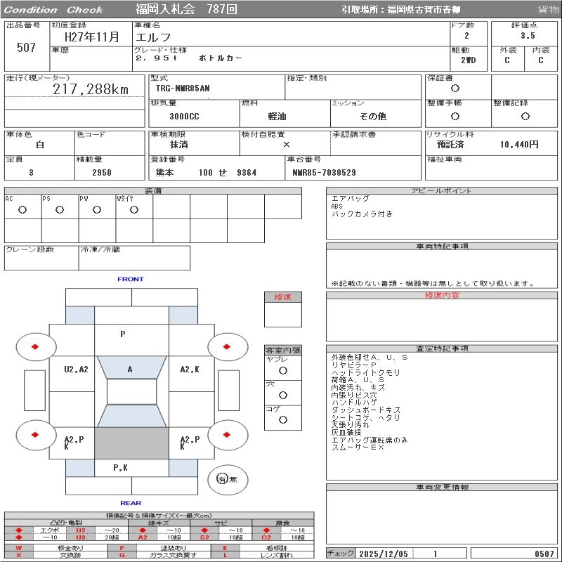 Статус выставлен на аукцион Лот 507 Аукцион ORIX Fukuoka Дата аукциона 09.12.2025