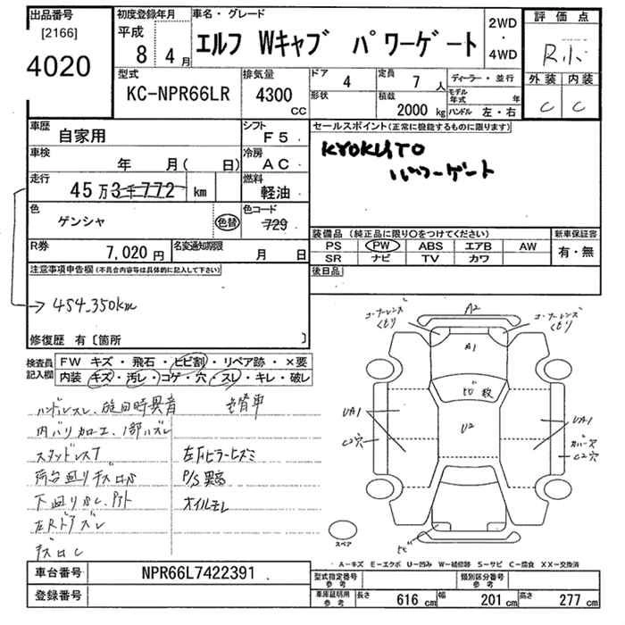 Год выпуска1996 Пробег 454 000 км КузовNPR66LR Комплектация2.0T W CAB POWER GATE